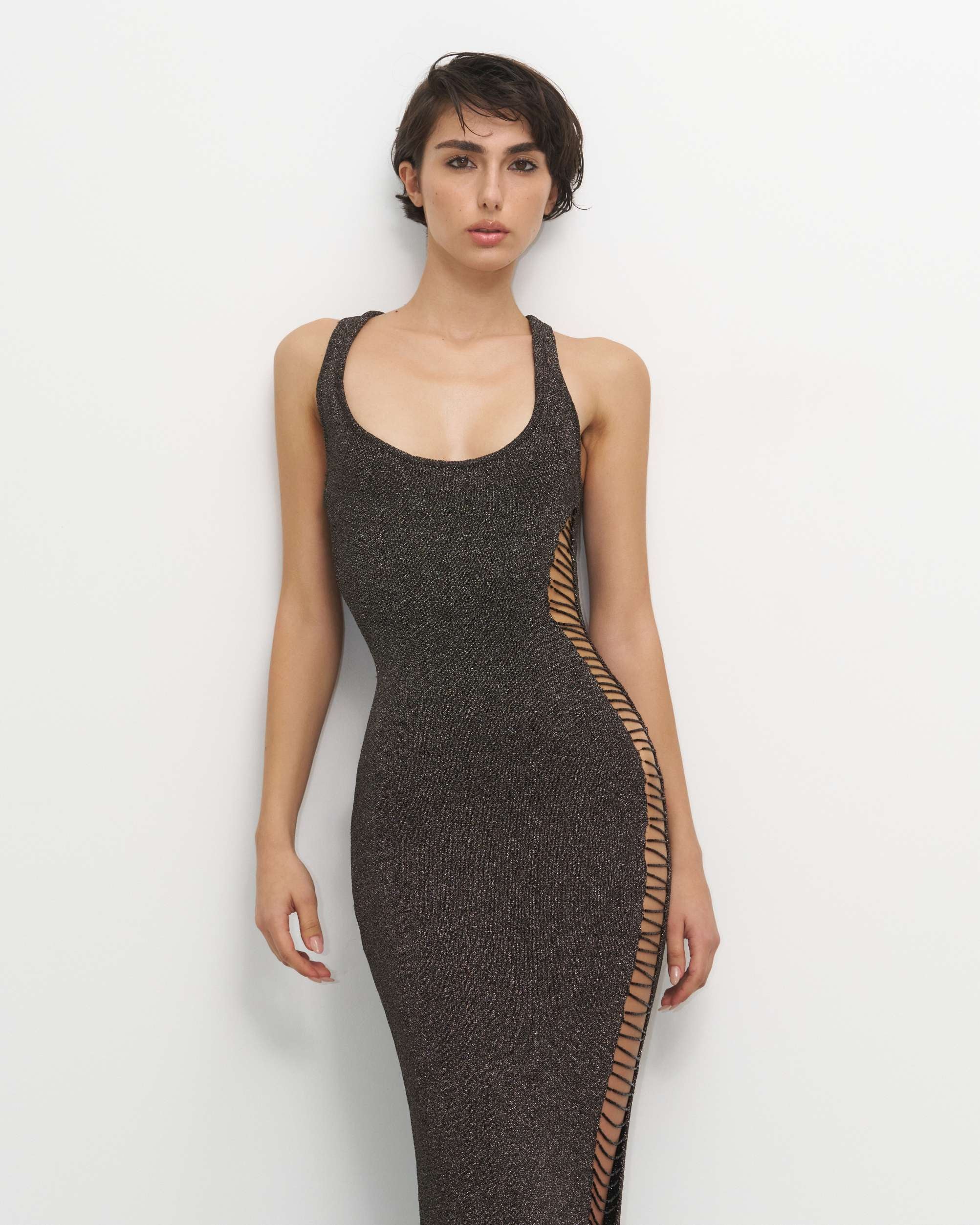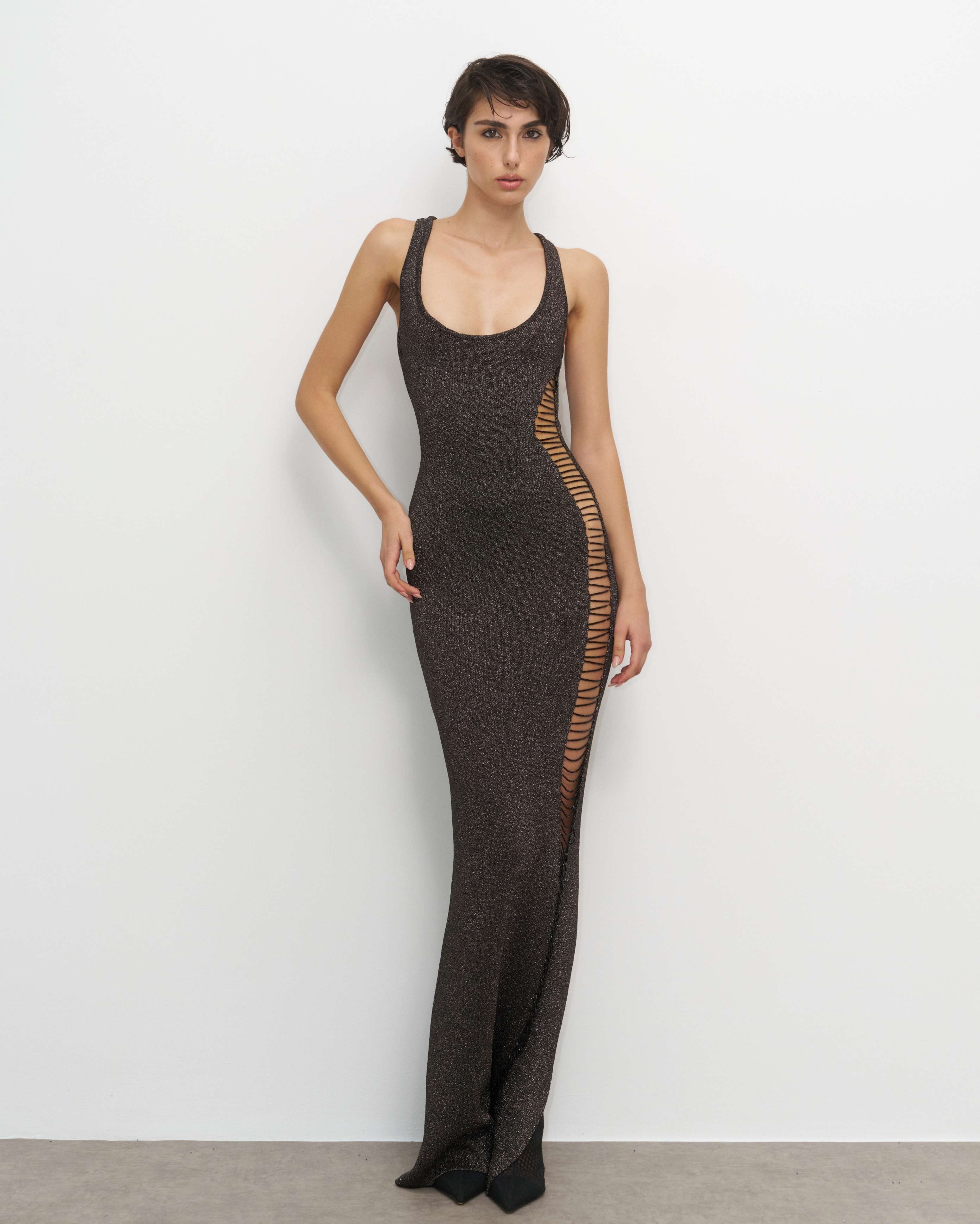 • Knited metalic threading with deaded side cut-out